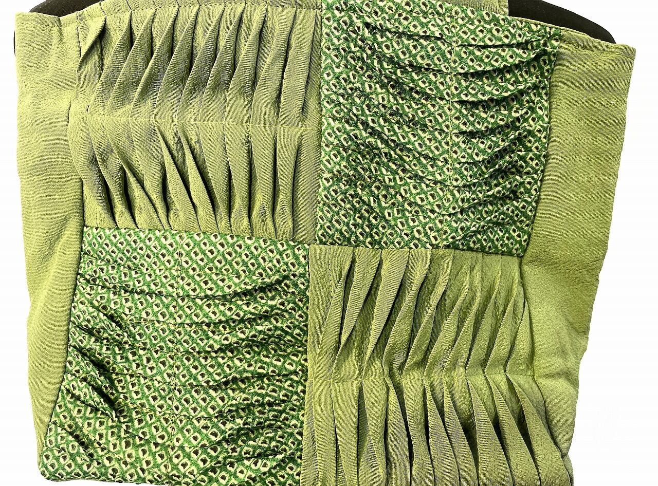 絹布 トートバッグ 和服リメイク 縦22センチX横25センチ S53-0101