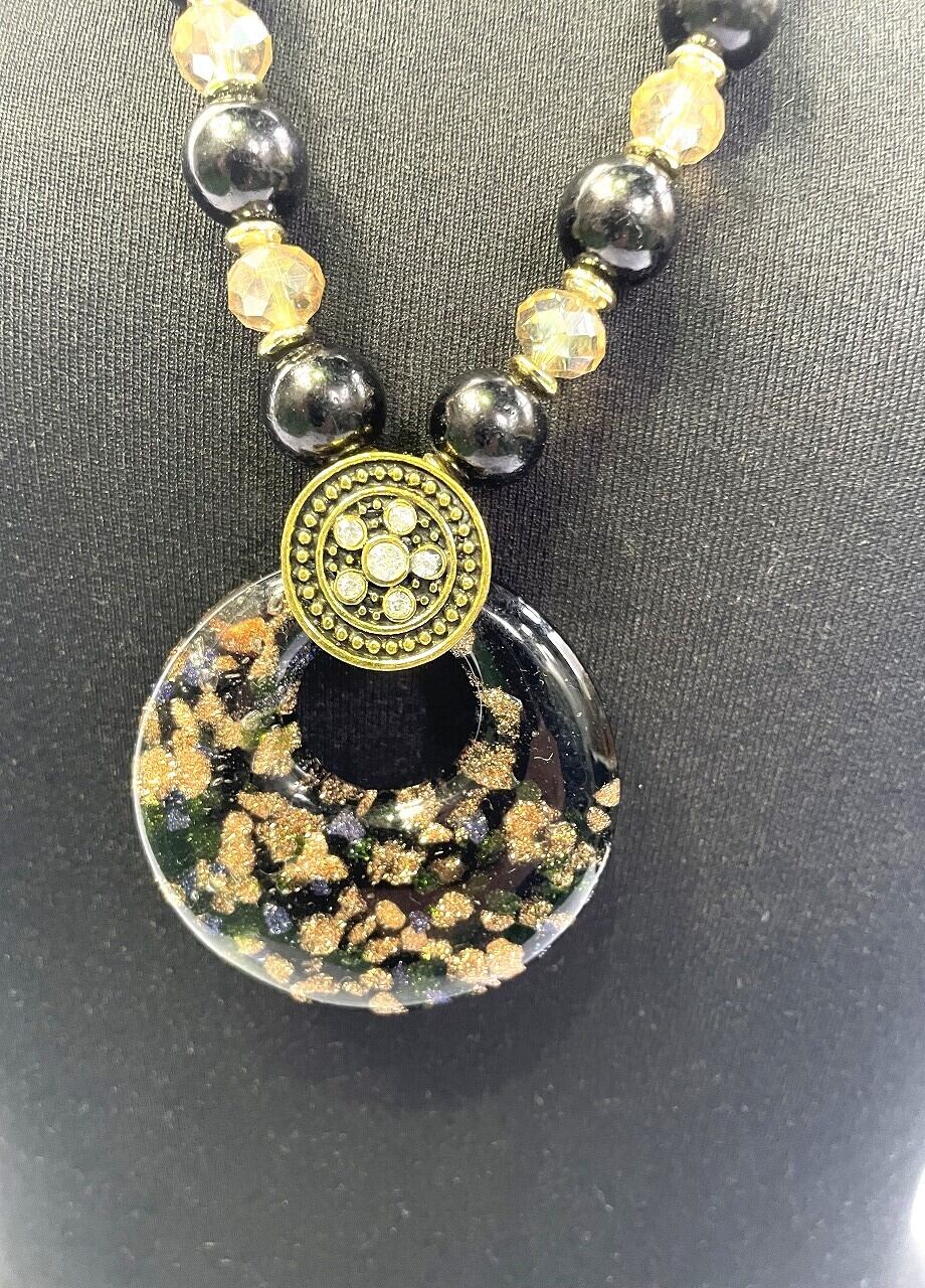 アジアン 大粒ガラスビーズネックレス トップ黒ガラス 33cm AN3-S0101