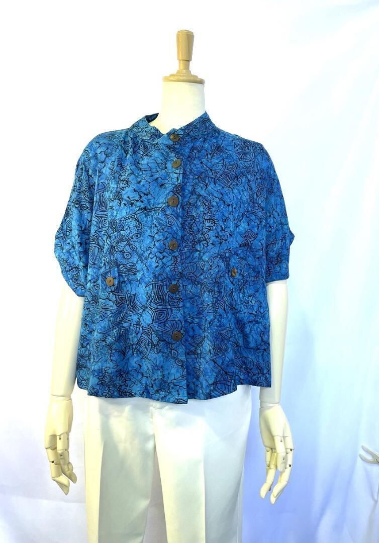 エスニック 半袖前開きブラウス チャイナ襟 フリーサイズ 03010303-02
