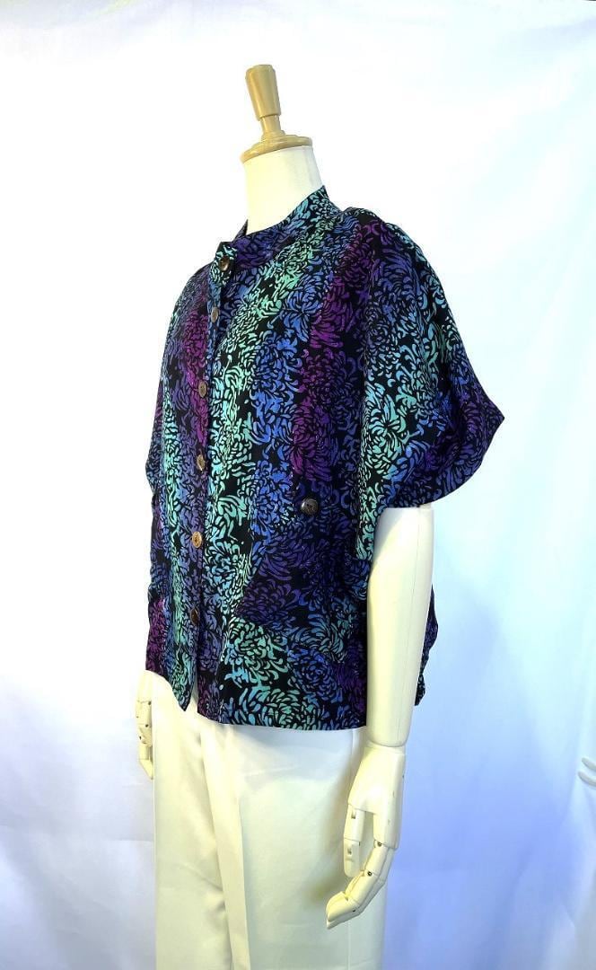 エスニック 半袖前開きブラウス チャイナ襟 フリーサイズ 03010303-04
