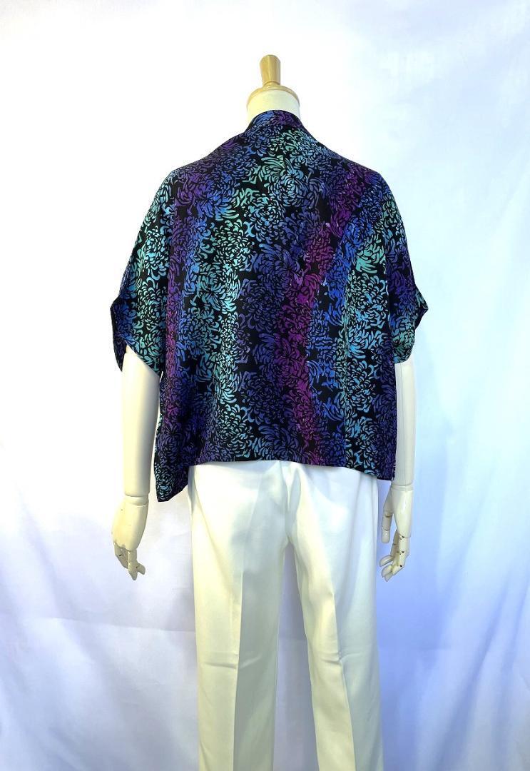 色鮮やかな柄がパッと目を惹く、柔らかな肌触りと、ふわりと軽い着心地は大人の遊び着にぴったり!