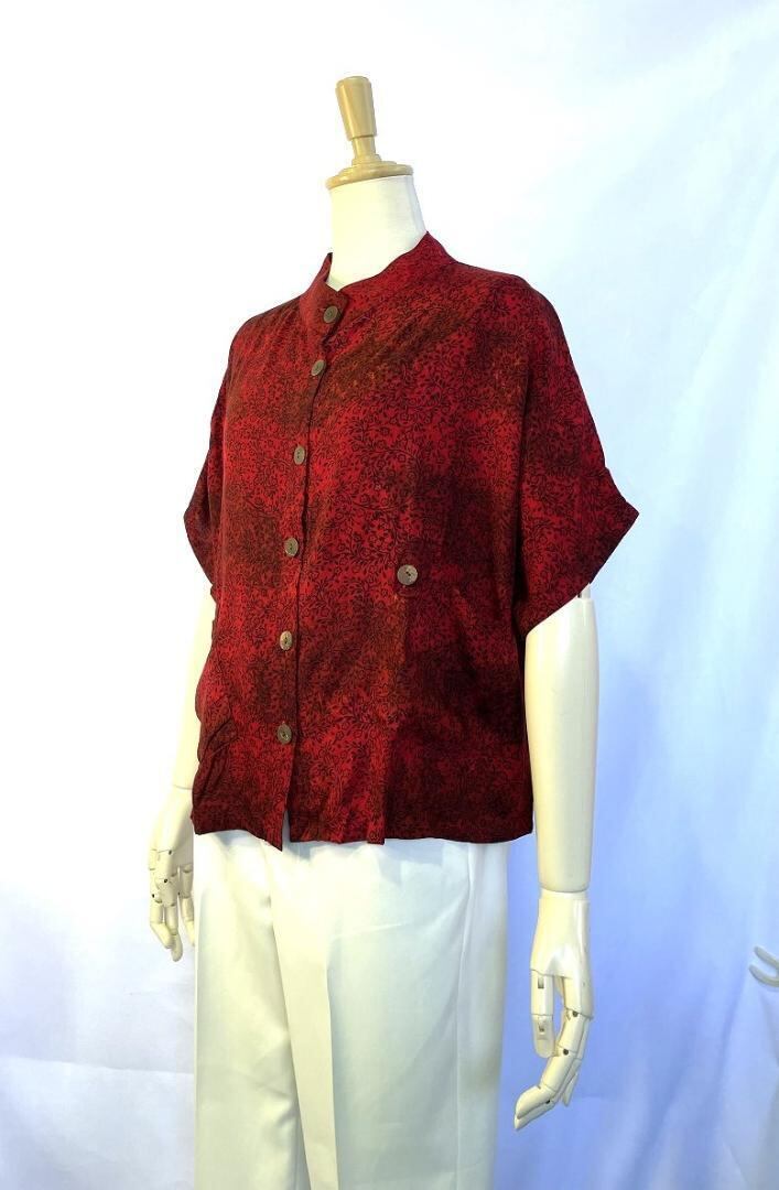 エスニック 半袖前開きブラウス チャイナ襟 フリーサイズ 03010303-14