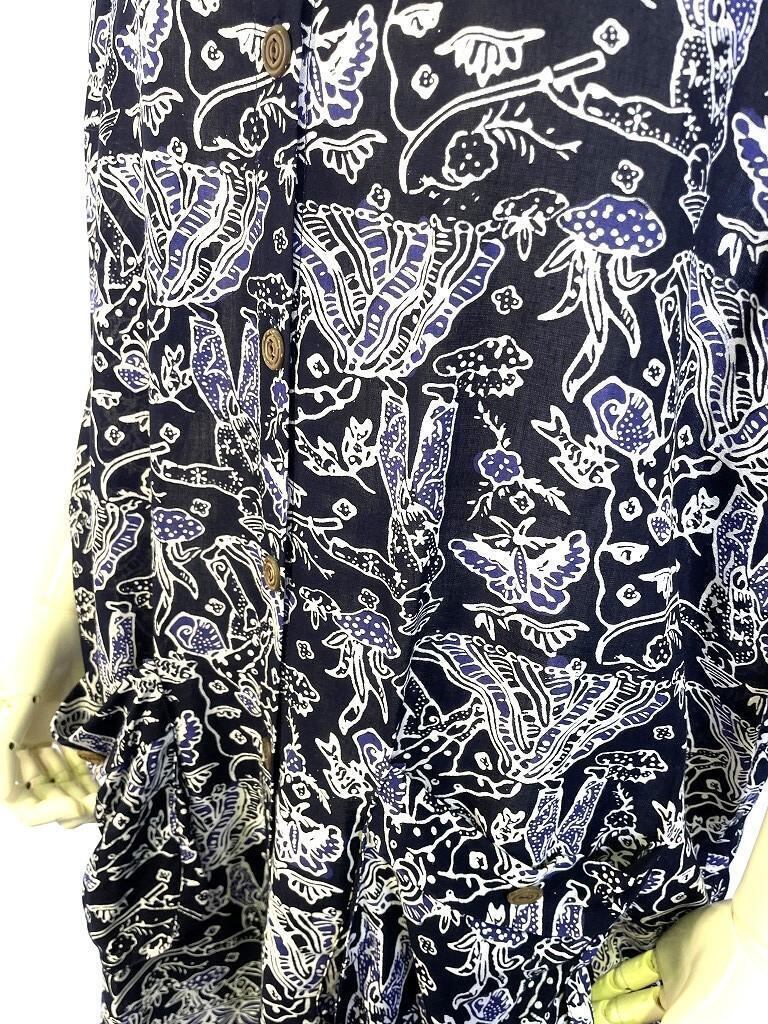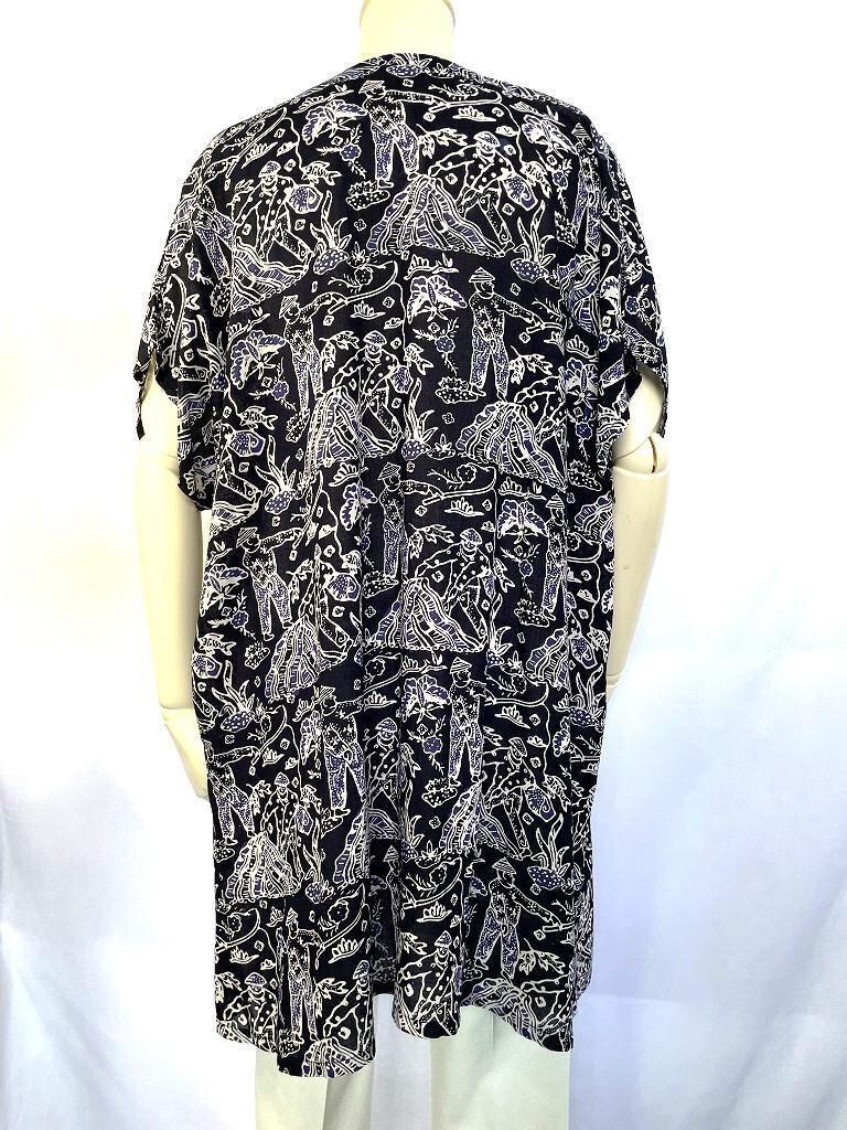 エスニック ロングブラウス 半袖 前開き・両ポケット付 涼しくてラクチン S031001-03