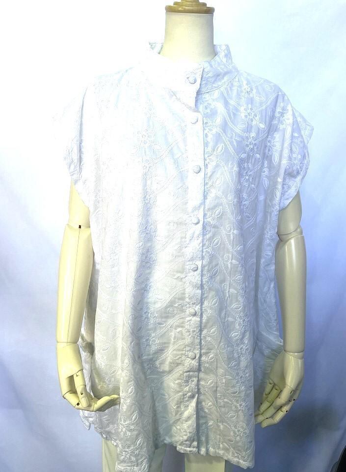 エスニック 総刺繍ブラウス 半袖・前開き 綿 SM 01-010702-01