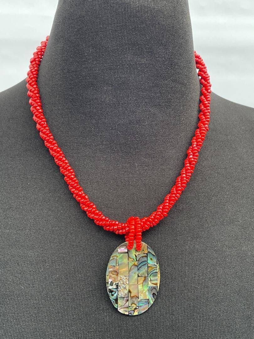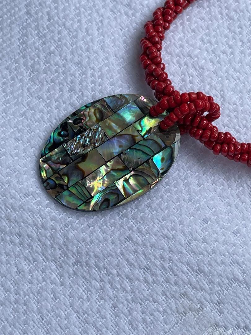 インドネシア バリ島の海の貝をトップにしたビーズネックレスです。